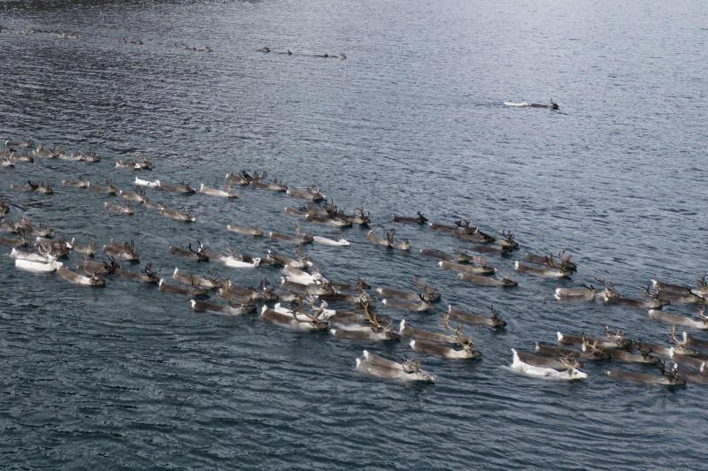 2023年9月14日,北极地区的土著居民萨米人带领驯鹿群迁往冬季栖息地。(新华社)