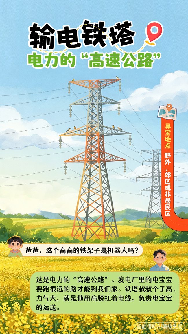 新学期已正式开启,除了课本知识,生活里也藏着好多“学问”。田野里的铁塔、路边的绿箱子、屋顶的蓝镜子……这些孩子天天见却叫不出名字的“电力卫士”,到底是什么来头?把科普变成寻宝游戏,把硬核电力知识变成孩子听得懂的童话,踏青路上边走边学,一起解锁这堂“周末实践课”!(余金蔚)